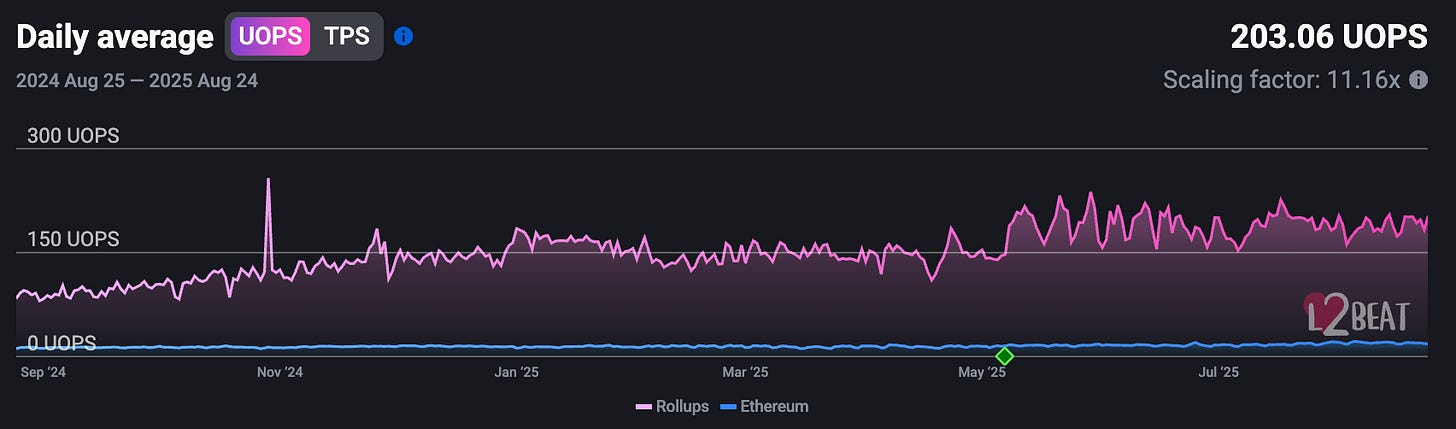 User operations of Rollups on Ethereum, including regular transactions and actions bundled into a single transaction.
