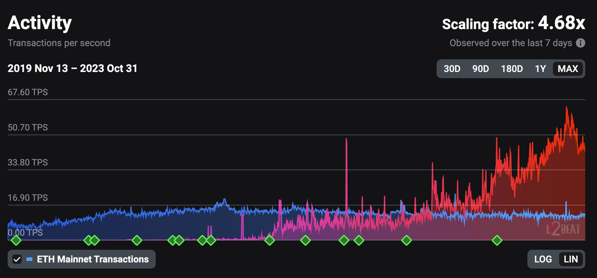 Transaction capacity of Ethereum including all Layer 2s under its security.