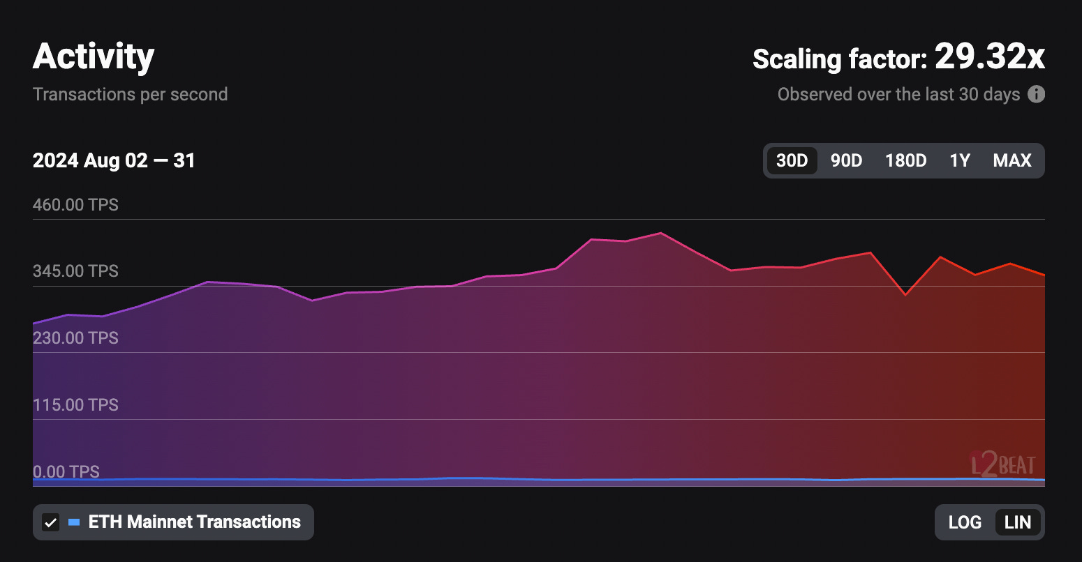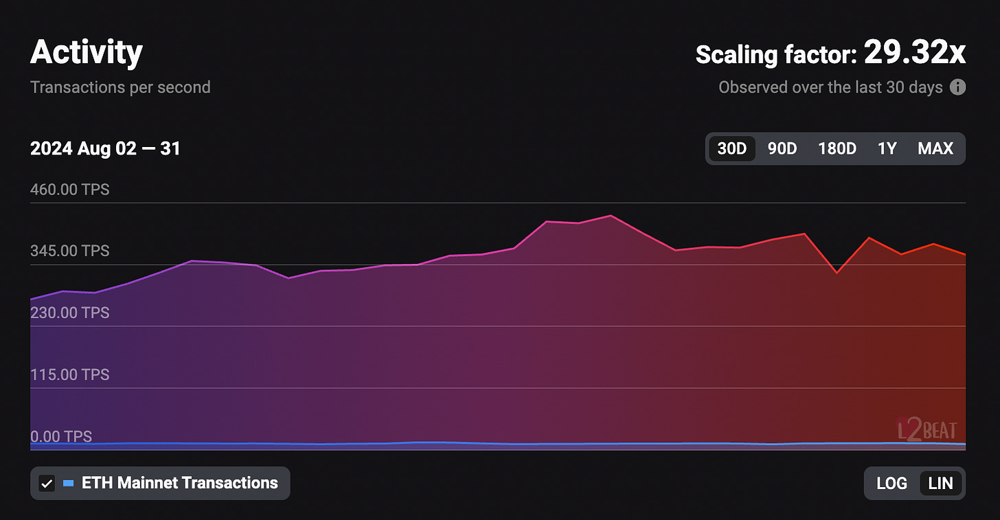 Transaction capacity of Ethereum including all Layer 2s under its security.