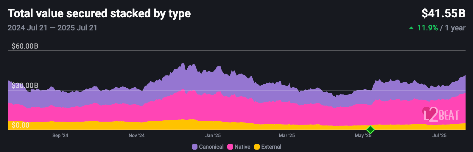 Sum of all value locked in the L2 ecosystem.