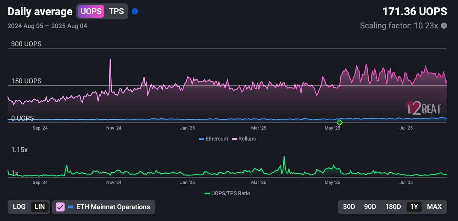 User operations of Rollups on Ethereum, including regular transactions and actions bundled into a single transaction.